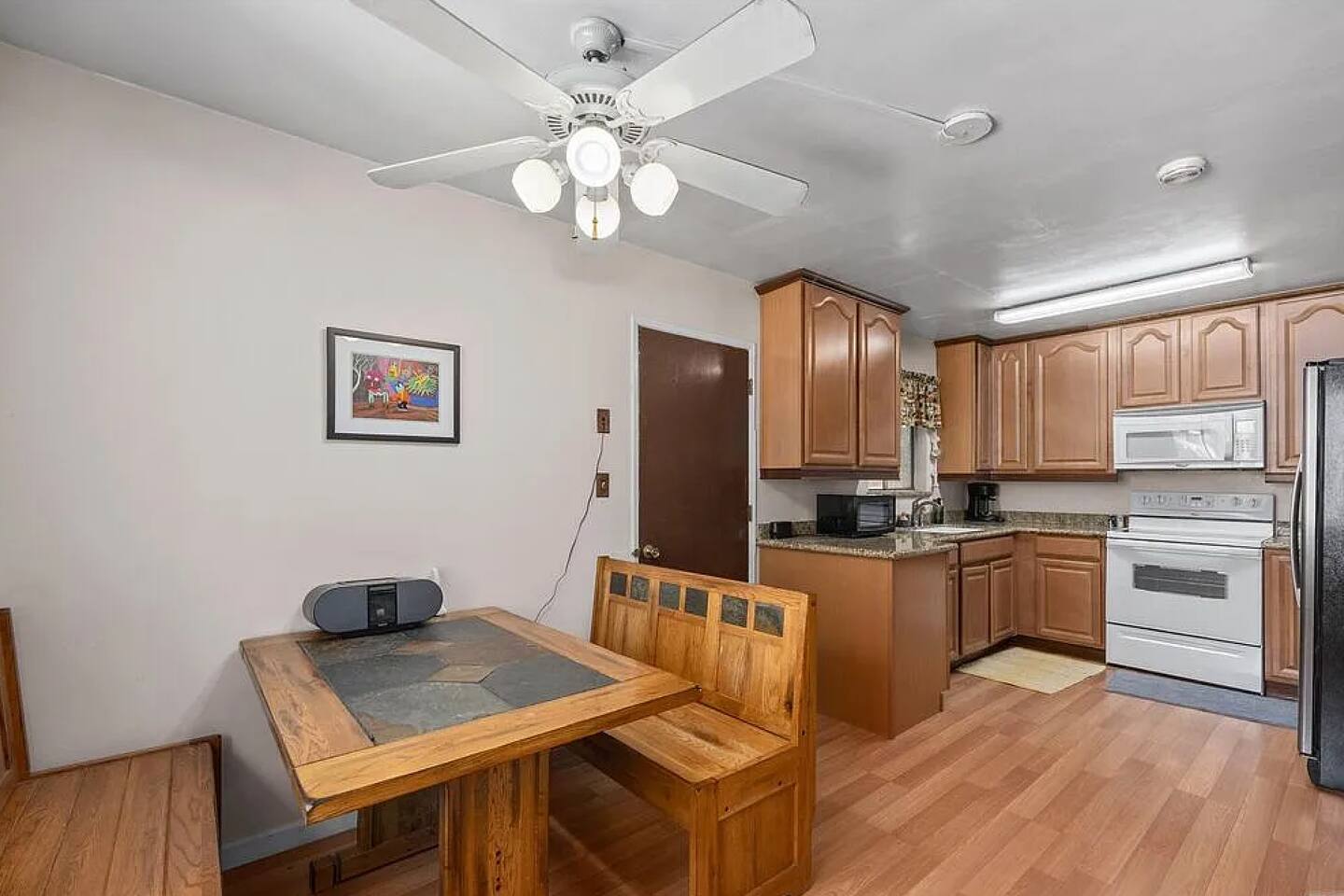 The Riverkern Retreat is a 3BR, 2BA mountain home just north of downtown Kernville in the quiet Riverkern neighborhood. King bed in the master, queen guest room, and double bunk room with two full beds (sleeps 6–8). Wood-burning fireplace and full kitchen. Walk to Bubbles Beach on the Kern River and the Riverkern General Store. Studio above garage may be rented separately. Outdoor adventure all around!