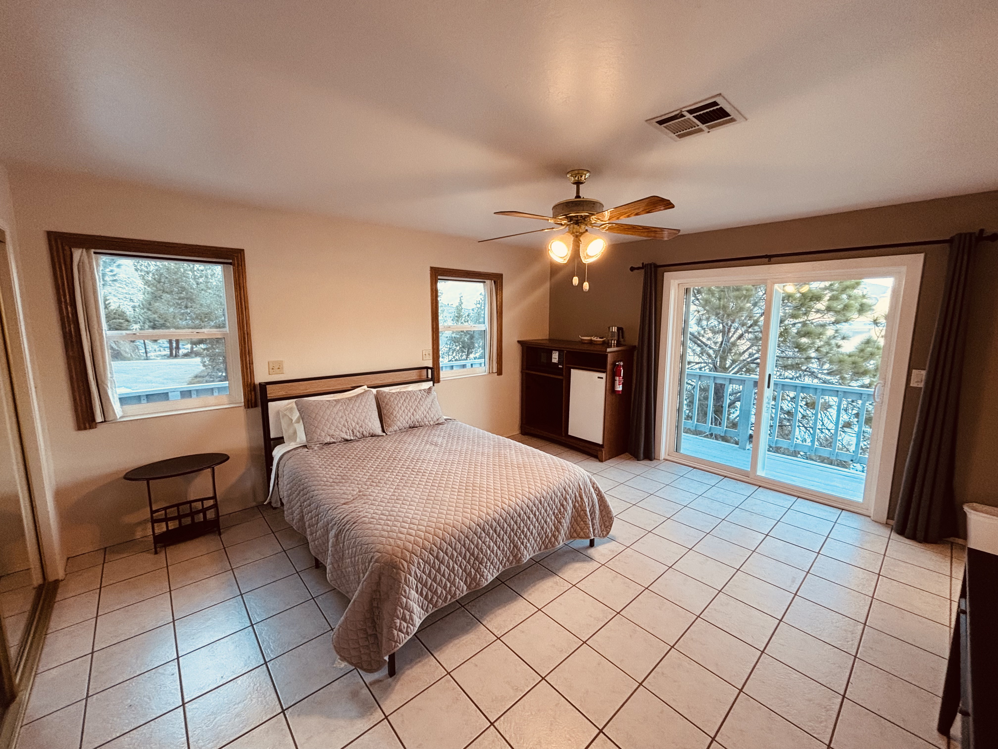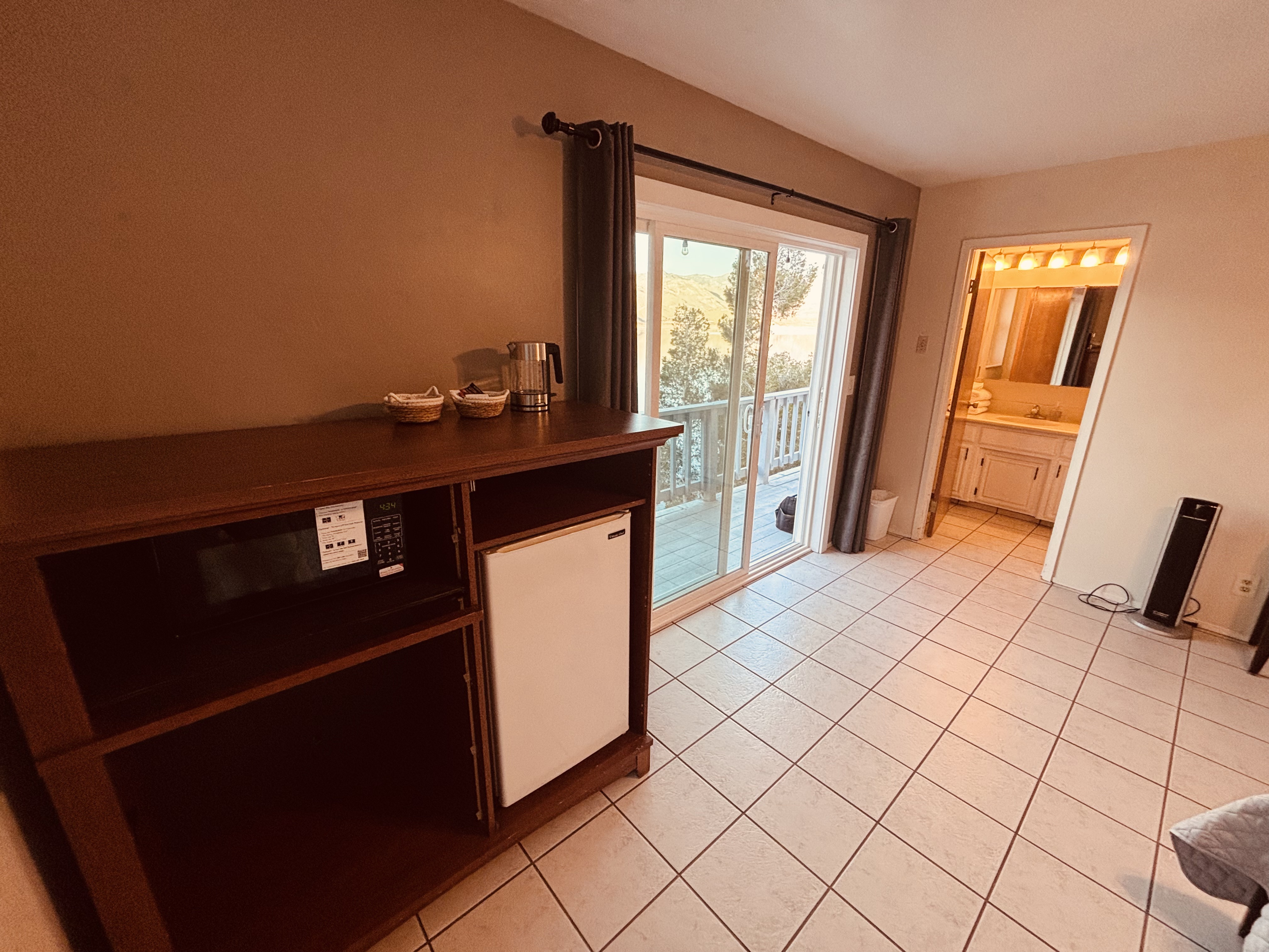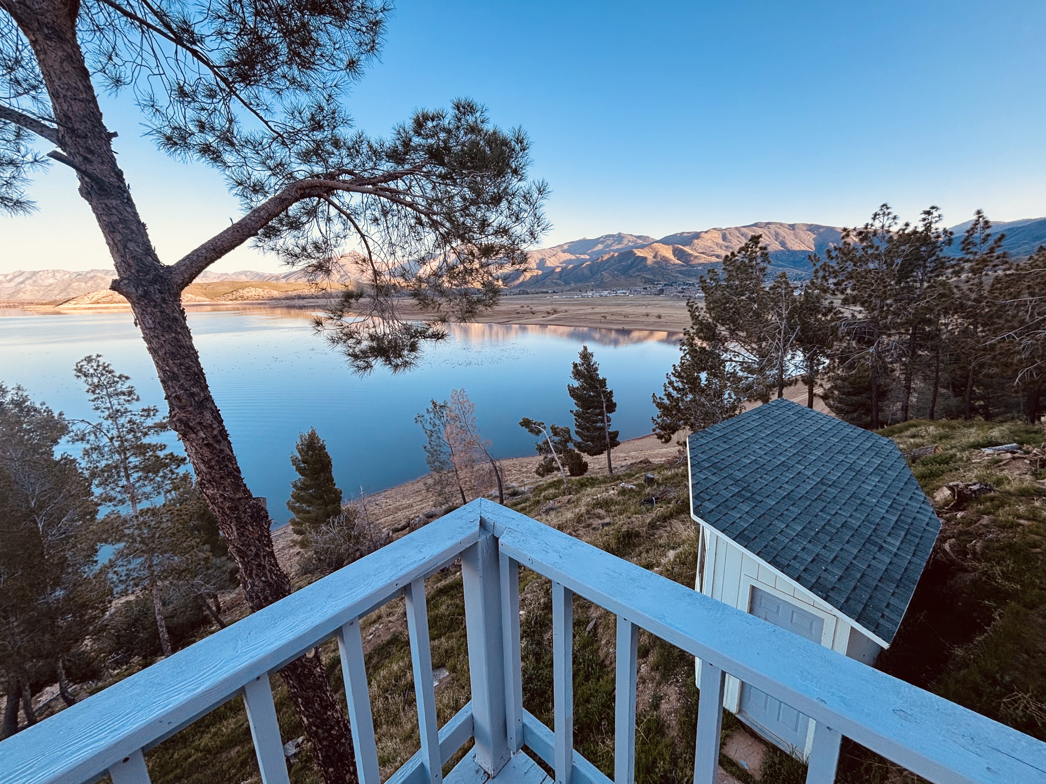 Private lakeside suite with queen bed, bath, smart TV, and mini-kitchenette (microwave + coffee maker). Separate entrance from main house via lake-facing deck. Stunning Lake Isabella views, bald eagles, and shoreline fishing below. On 3 private acres with trails to the water and near Kissack Cove boat ramp. Peaceful, quiet, and perfect for relaxing in nature.